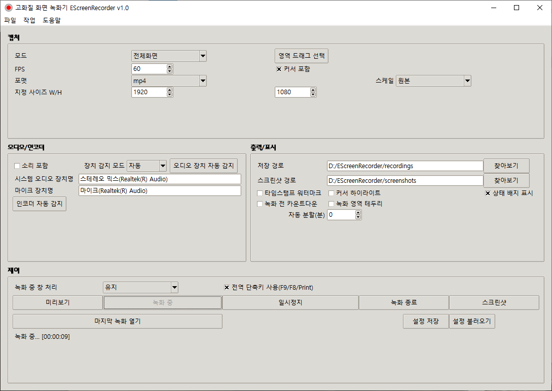 - 프로그램명: EScreenRecorder